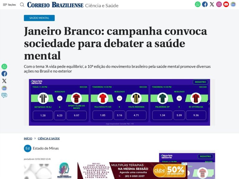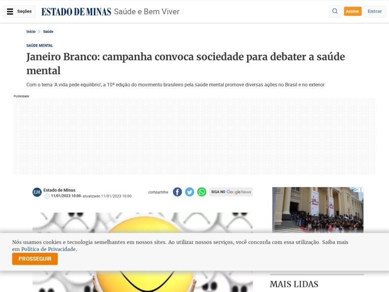 Confira as matérias e reportagens sobre o impacto do Instituto Janeiro Branco na promoção da saúde mental. Nesta página, reunimos conteúdos e links de publicações na imprensa que destacam nosso trabalho, nossos eventos e o compromisso com uma sociedade mais consciente e saudável. Explore e veja como estamos transformando vidas!